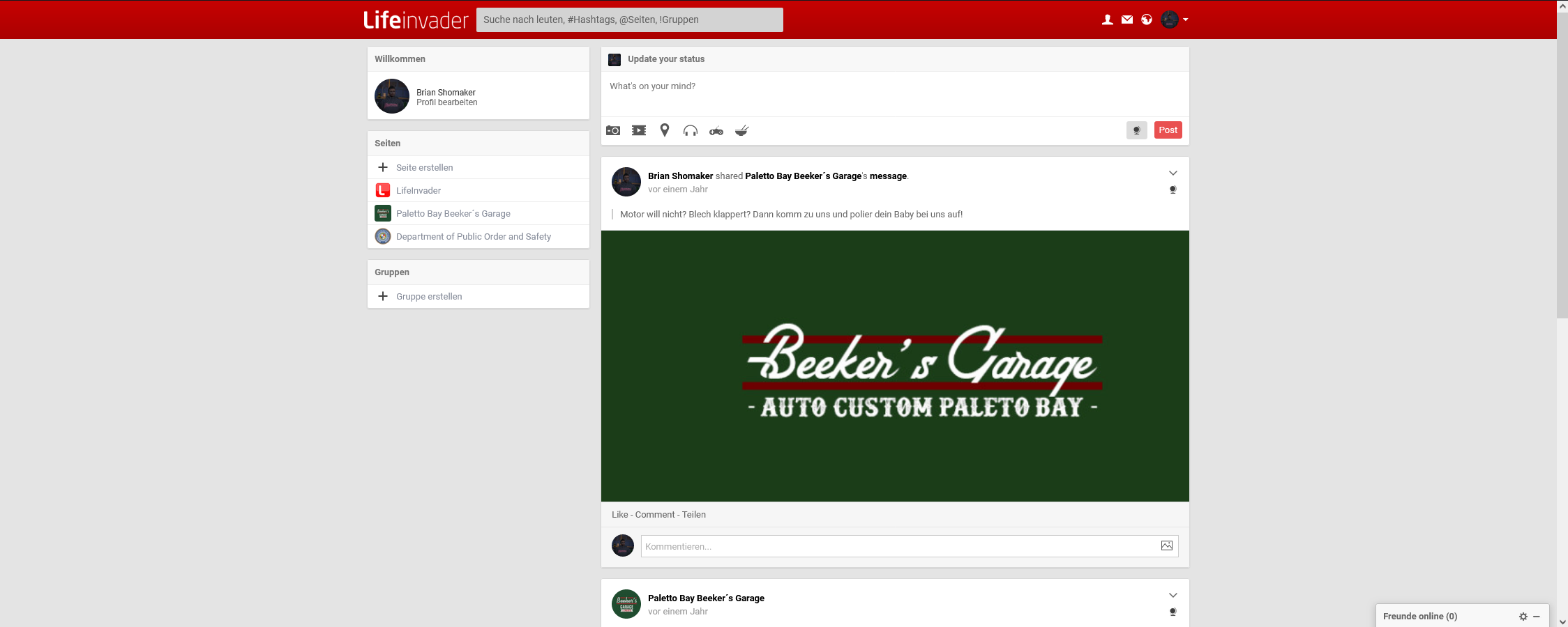 Als ein Teil unseres Servers wird es natürlich auch eine servereigene LifeInvader-Version auf Basis des phpSocial geben. Leider ist die Übersetzung vom Englischen ins Deutsche eine Herausforderung, weil dies als einzelne Person sehr zeitauswendig ist. Der Grund hierfür ist, dass viele Funktionen erst im aktiven Betrieb zu sehen sind.